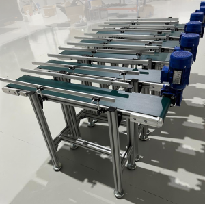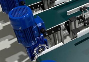 Para enfrentar este desafio, procurámos desenvolver uma solução que fosse, simultaneamente, simples na sua conceção e extremamente versátil na sua aplicação. Optámos por uma arquitetura modular, que permitisse a fácil substituição de componentes e a adaptação a diferentes cenários de formação. Os materiais selecionados foram cruciais: utilizámos perfis de alumínio anodizado de alta resistência para a estrutura, garantindo leveza e robustez, facilitando o manuseamento durante a montagem e as futuras reconfigurações didáticas. As bandas em PVC dos transportadores foram concebidas com polímeros de alta durabilidade, resistentes à abrasão e de fácil limpeza, essenciais para um ambiente de formação.