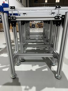 O processo de construção foi otimizado através de técnicas de corte a laser de precisão para os perfis metálicos e sistemas de encaixe rápido para a montagem, minimizando o tempo de produção e garantindo a uniformidade e qualidade de cada unidade. Esta abordagem permitiu uma montagem eficiente, mesmo com a complexidade inerente aos componentes eletromecânicos, como motores de passo, sensores de proximidade e sistemas de controlo programáveis. A Dunbelt, com o empenho e a grande força de vontade, valor e sentido de responsabilidade, realizou a parceria certa para obter o sucesso na execução deste Projeto. A colaboração com a FluidPower foi fundamental, integrando os componentes de forma harmoniosa e eficiente. A sua expertise em desenvolvimento, construção e montagem de equipamentos e componentes eletromecânicos foi indispensável, permitindo-nos entregar uma solução completa e de ponta.